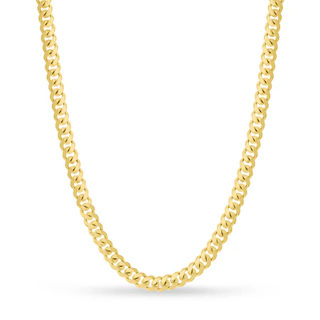 This Miami Cuban chain necklace is styled in 14K yellow gold. The necklace secures with a secure lobster lock clasp.